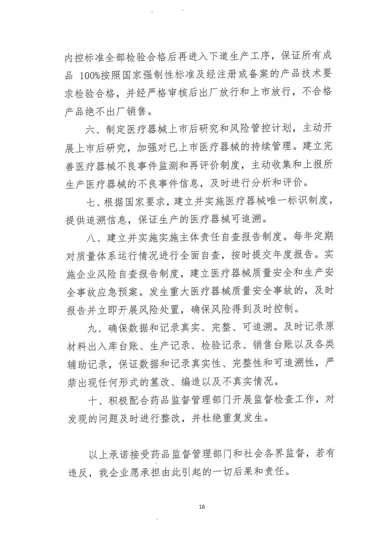 煙臺愛心醫(yī)療器械有限公司醫(yī)療器械質(zhì)量安全主體責(zé)任承認書